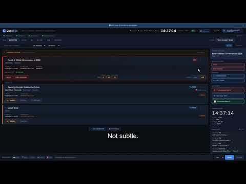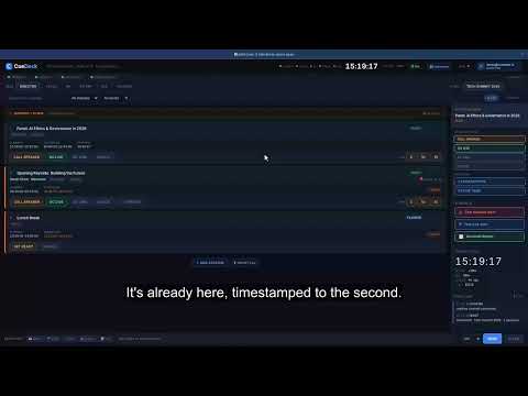 The Cue Engine fires 8 minutes before every session with an AI-generated readiness checklist — mic, slides, speaker, AV. Never miss a pre-cue.