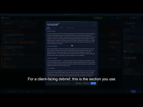 After the event, generate a full debrief: session variance, incident log, executive summary, and AI narrative — ready to send to your client.